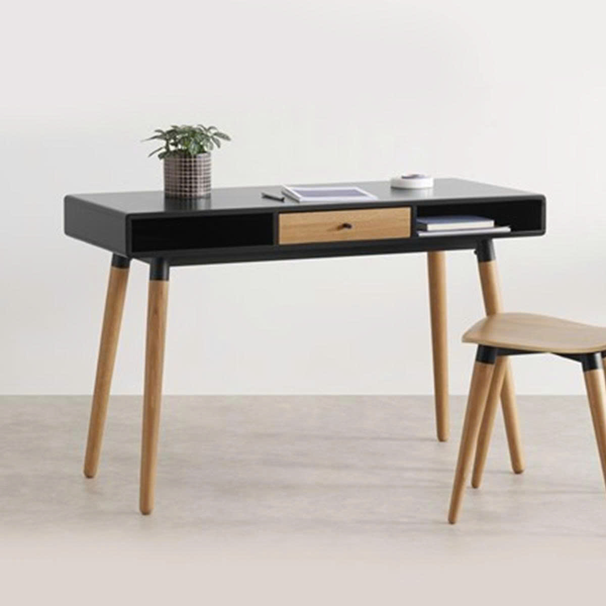 Bạn vẫn có đủ chỗ cho laptop, tài liệu, thêm một chút decor xinh xắn để góc làm việc trở nên có hồn hơn.