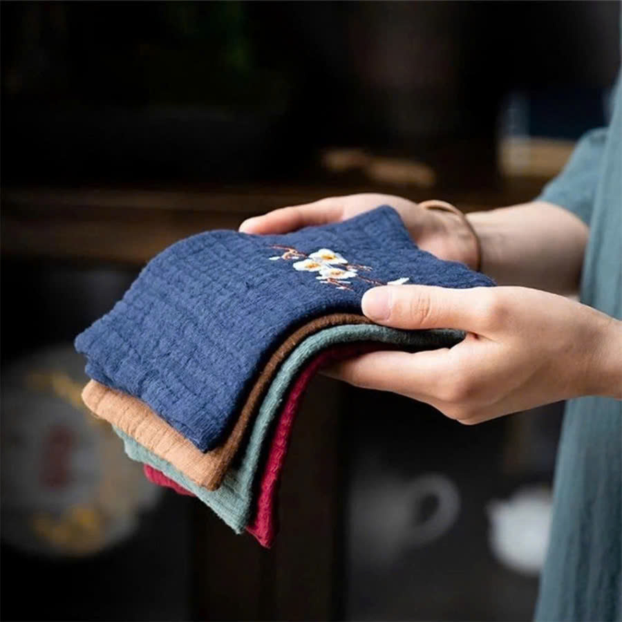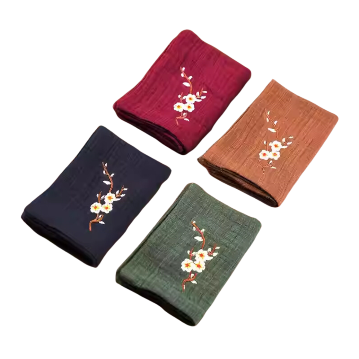 BỘ 4 KHĂN LAU THÊU HOA MAI TRẮNG
