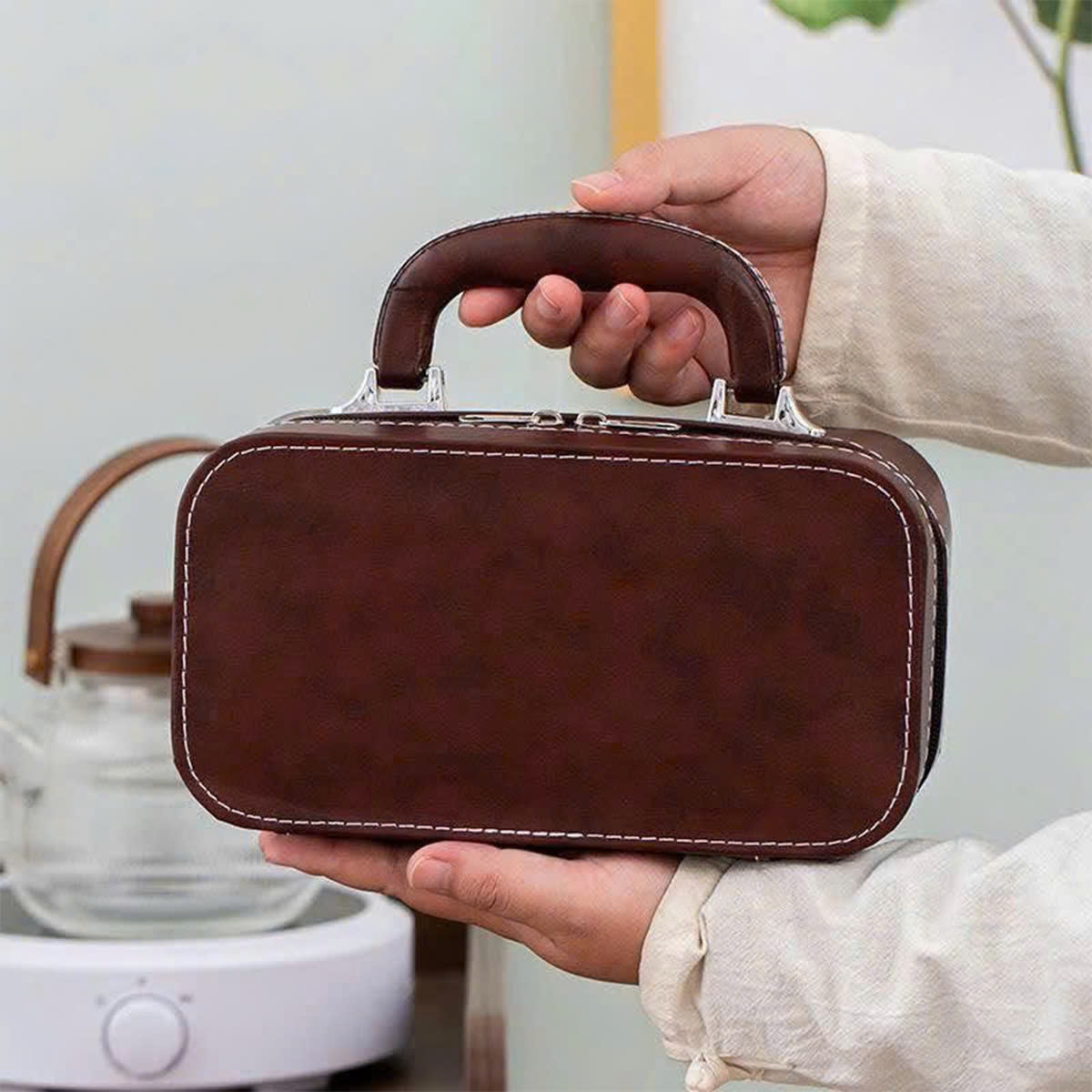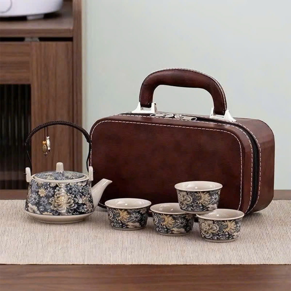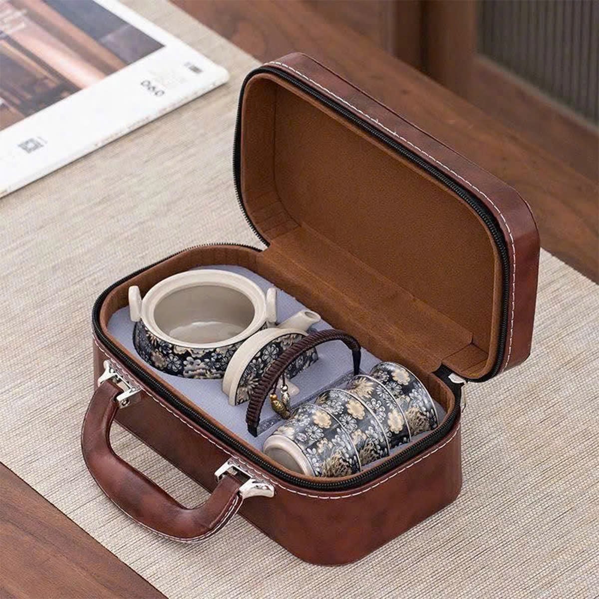 Bộ ấm chén cao cấp kèm vali da sang trọng – lựa chọn hoàn hảo cho những ai yêu thích sự tinh tế và phong cách trong từng chi tiết.