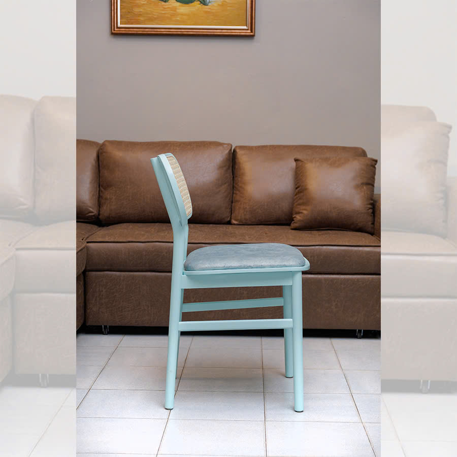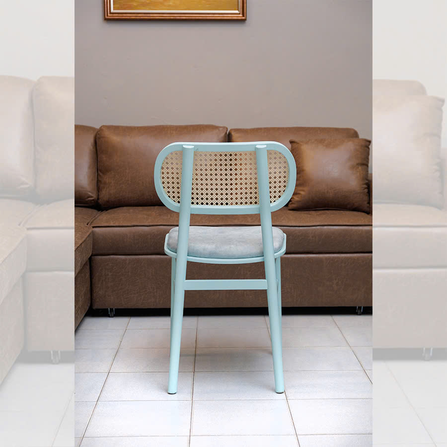 Chất liệu: Gỗ cao su + nhựa giả mây + nệm vải Microfiber