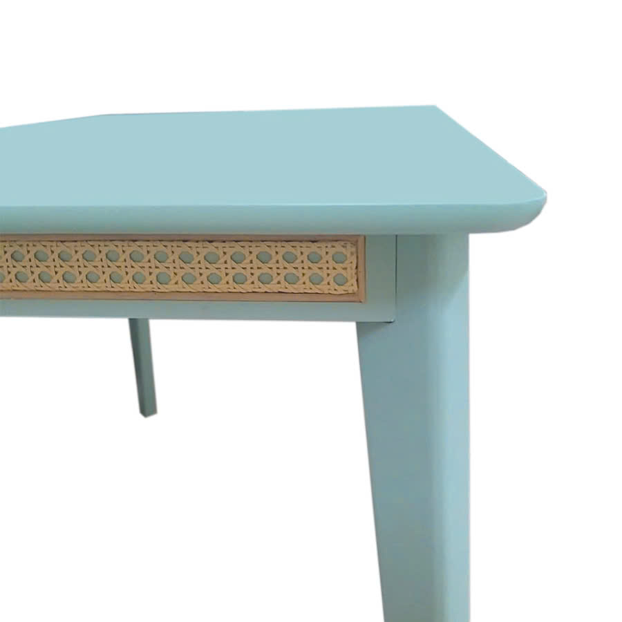 Chất liệu: Gỗ cao su + Venner + nhựa giả mây