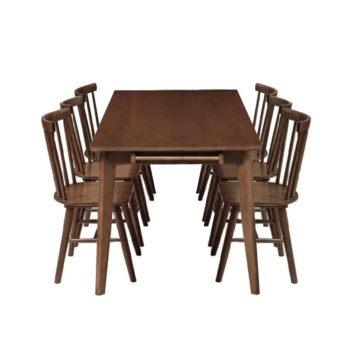 Mặt bàn gỗ cao su kết hợp MDF phủ veneer cho cảm giác chắc chắn, dễ lau chùi. Tông nâu gỗ trầm ấm của bàn kết hợp cùng ghế Windsor kiểu dáng cổ điển, mang đến vẻ đẹp thanh lịch, dễ dàng hòa hợp với nhiều phong cách nội thất khác nhau – từ truyền thống đến hiện đại.