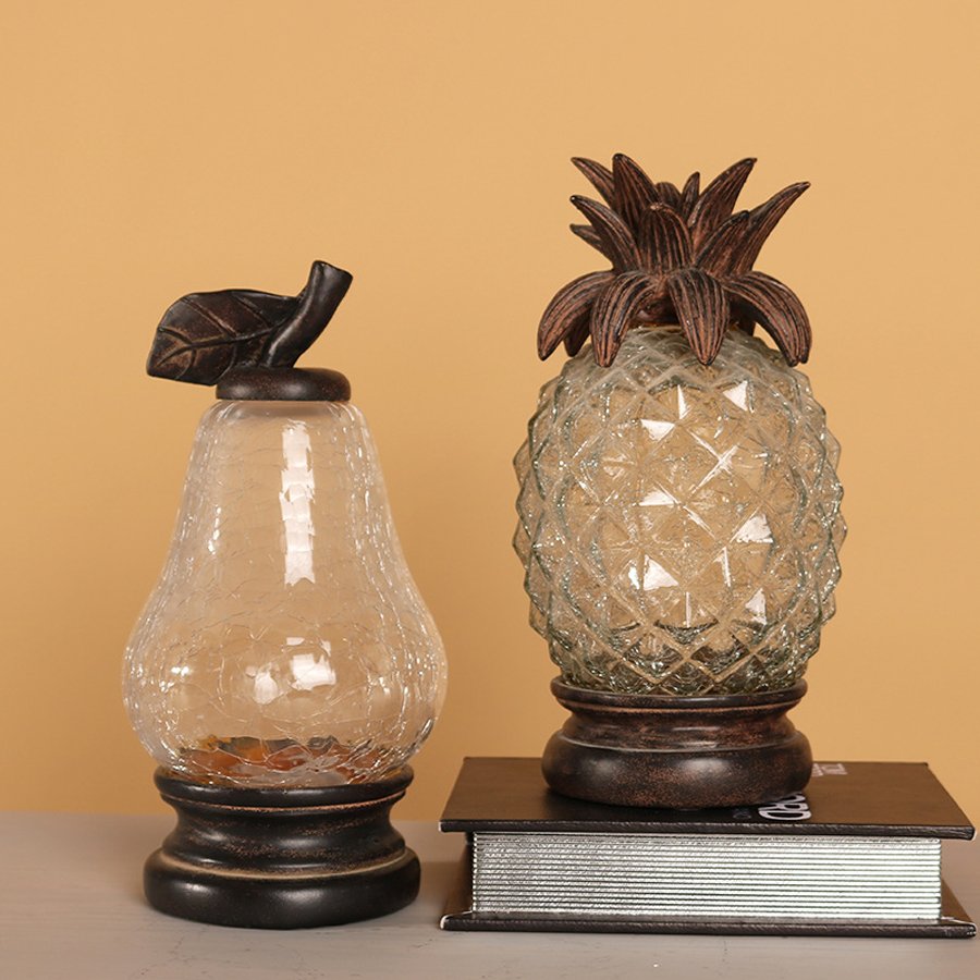 Với ba hình dáng quả dứa, quả táo và quả lê, mỗi chiếc đều độc đáo và đầy cá tính. Đèn được thiết kế tỉ mỉ với chất liệu thủy tinh rạn tạo cảm giác cổ điển và vintage. Bạn có thể đặt chúng trên bàn làm việc, kệ sách, trong tủ trưng bày hoặc bất kỳ không gian nào bạn muốn tạo điểm nhấn.