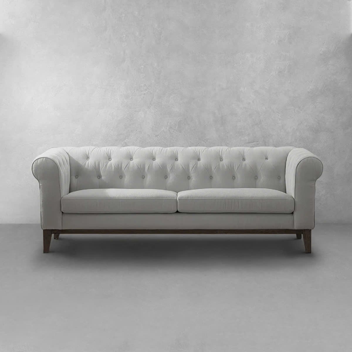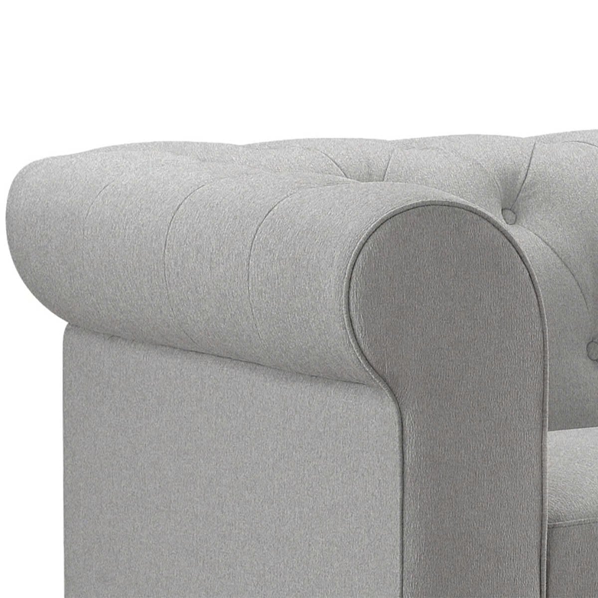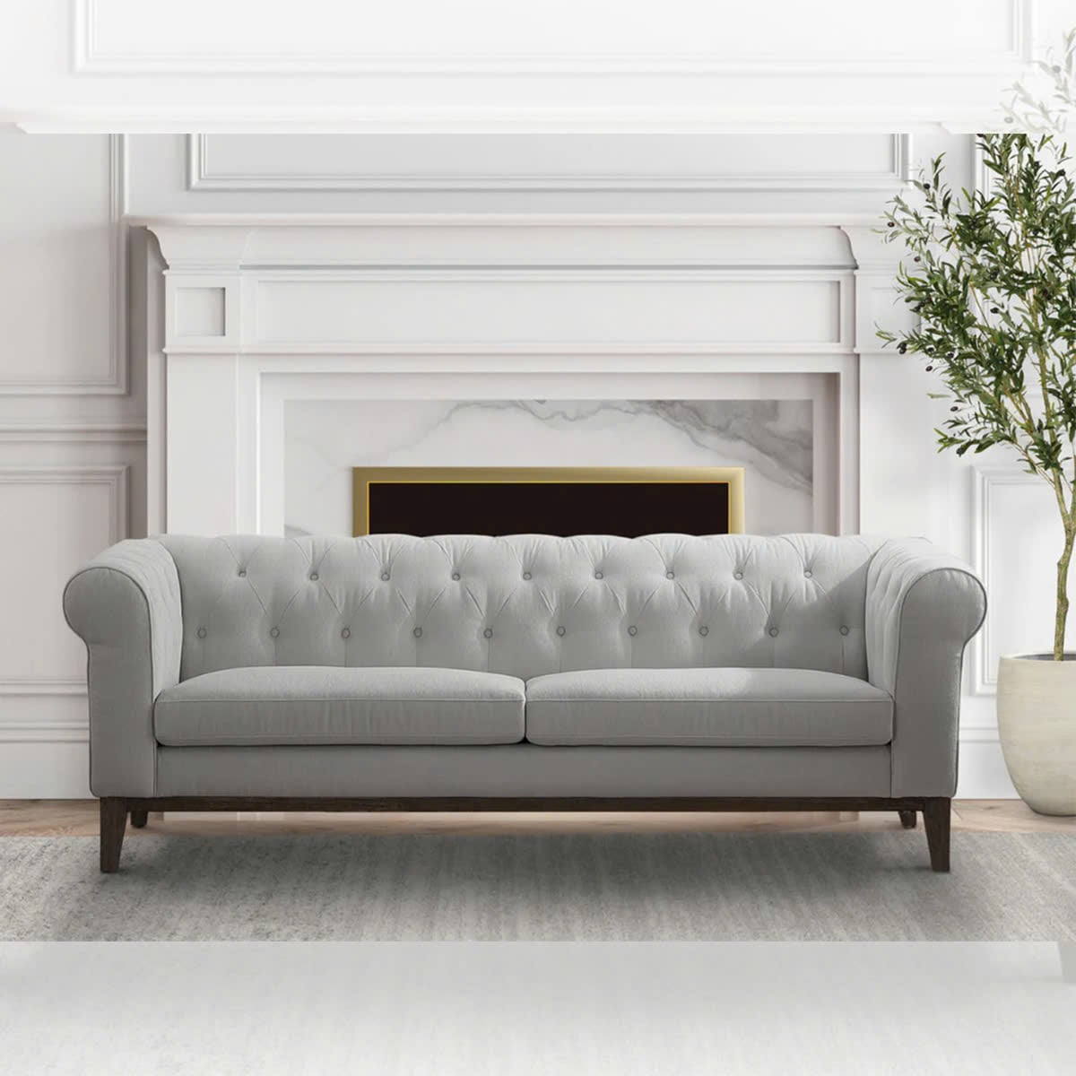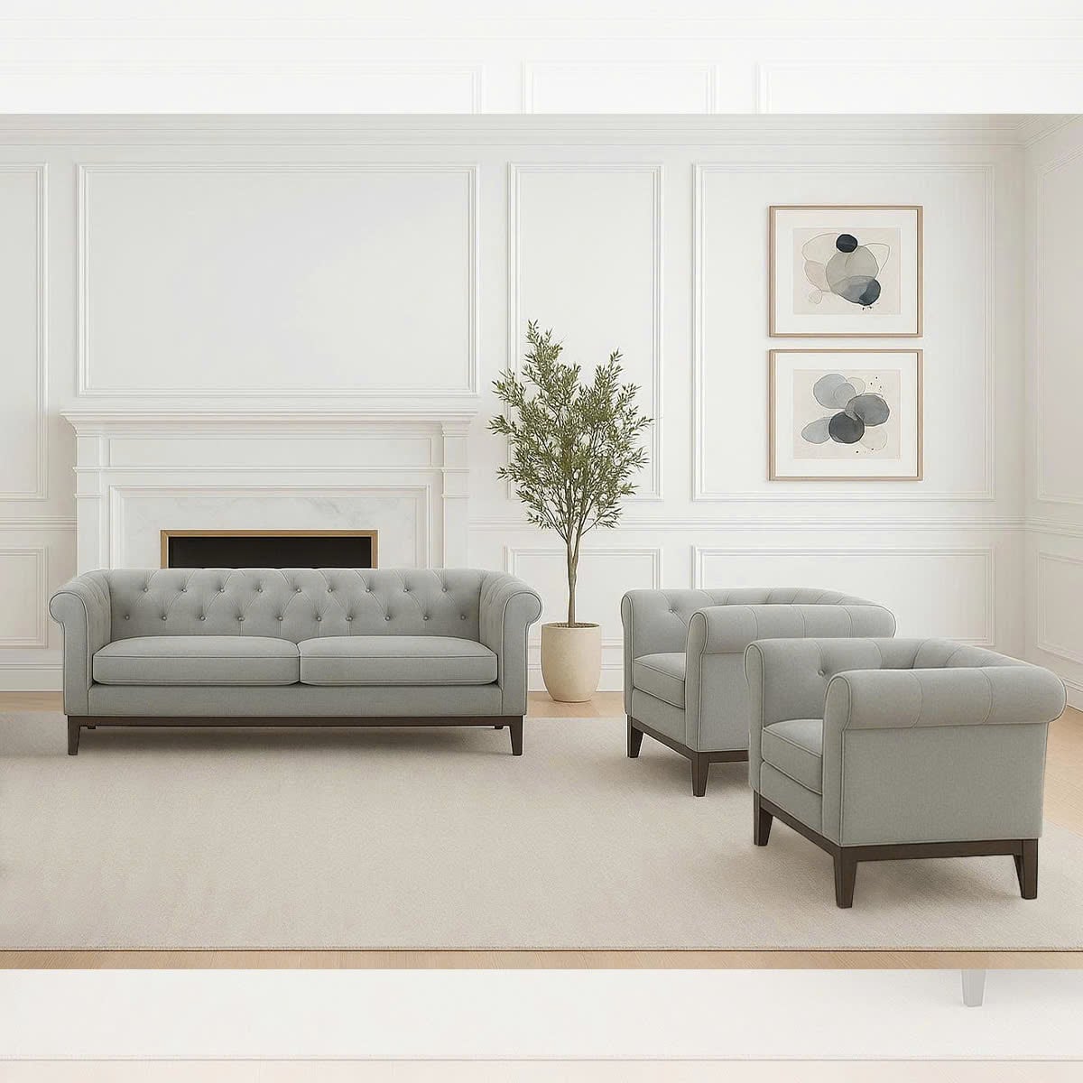 Ghế sofa Abbyson được thiết kế với dáng sofa băng 3 chỗ ngồi, tay vịn cuộn tròn mềm mại, phần tựa lưng may rút khuy tỉ mỉ, mang đậm phong cách cổ điển châu Âu. Kết hợp với gam màu xám thanh lịch, mẫu sofa này giúp phòng khách trở nên hiện đại, sang trọng và dễ phối hợp với nhiều phong cách nội thất.
