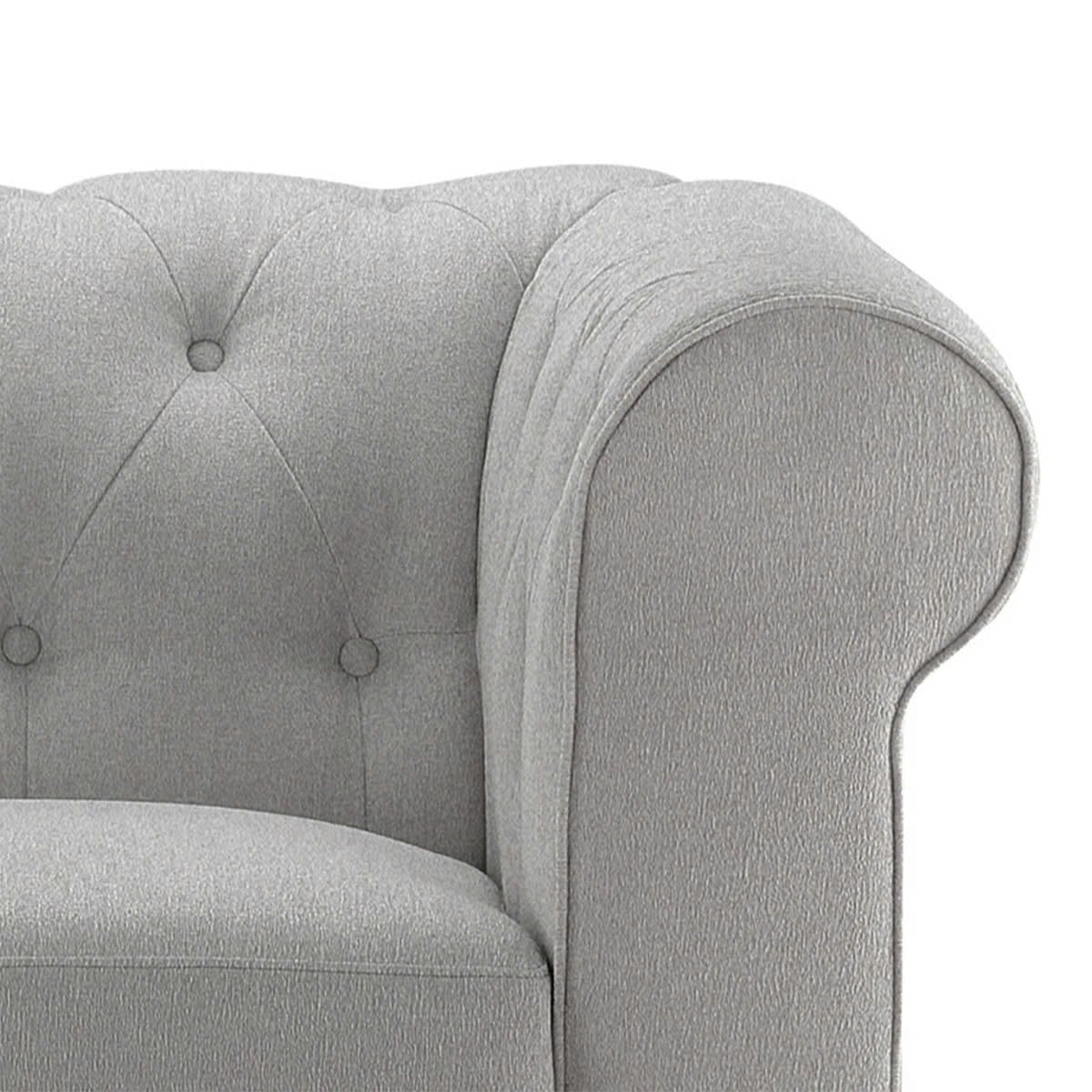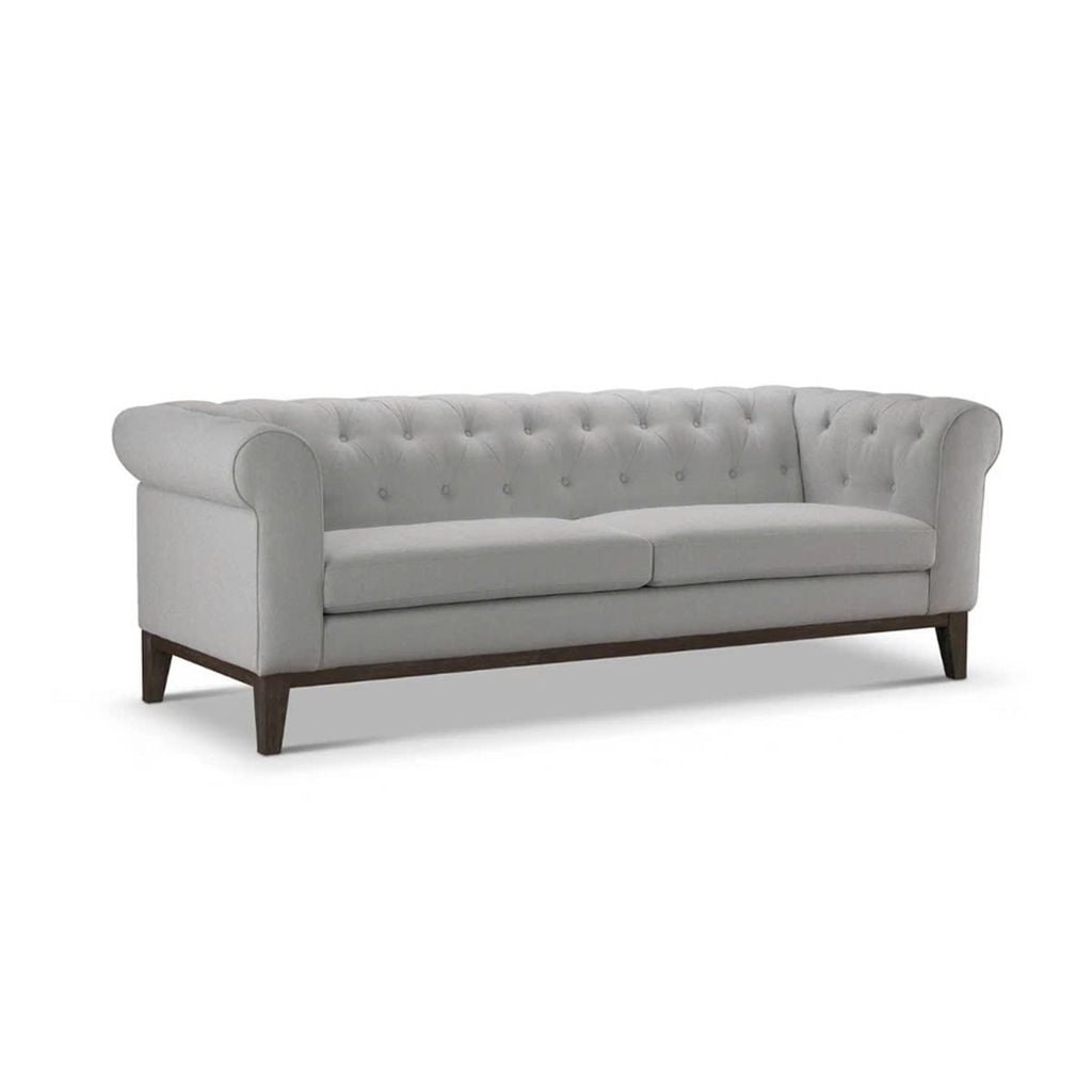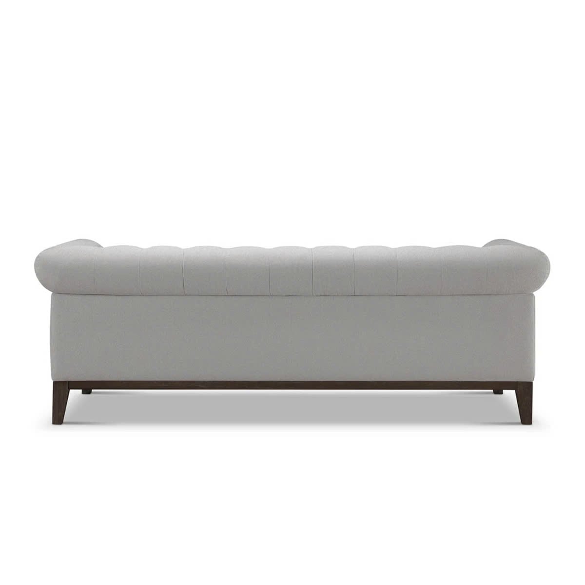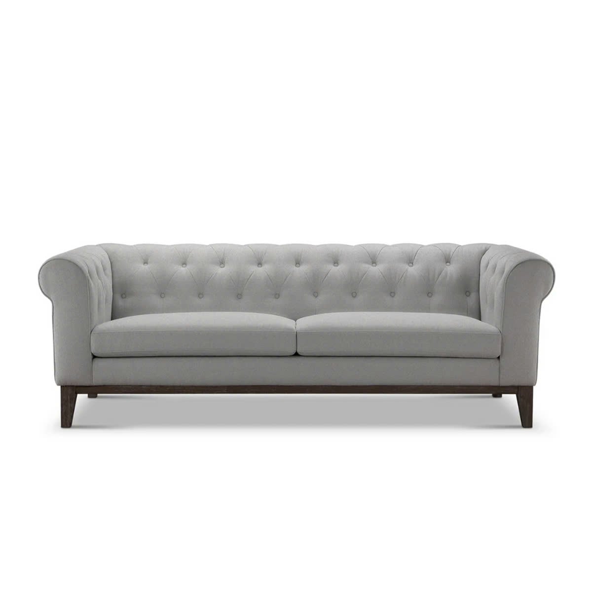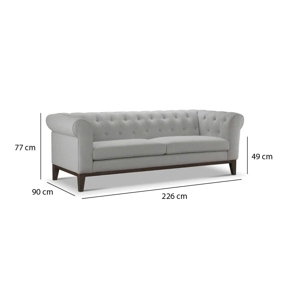 Ghế sofa Abbyson được thiết kế với dáng sofa băng 3 chỗ ngồi, tay vịn cuộn tròn mềm mại, phần tựa lưng may rút khuy tỉ mỉ, mang đậm phong cách cổ điển châu Âu. Kết hợp với gam màu xám thanh lịch, mẫu sofa này giúp phòng khách trở nên hiện đại, sang trọng và dễ phối hợp với nhiều phong cách nội thất.