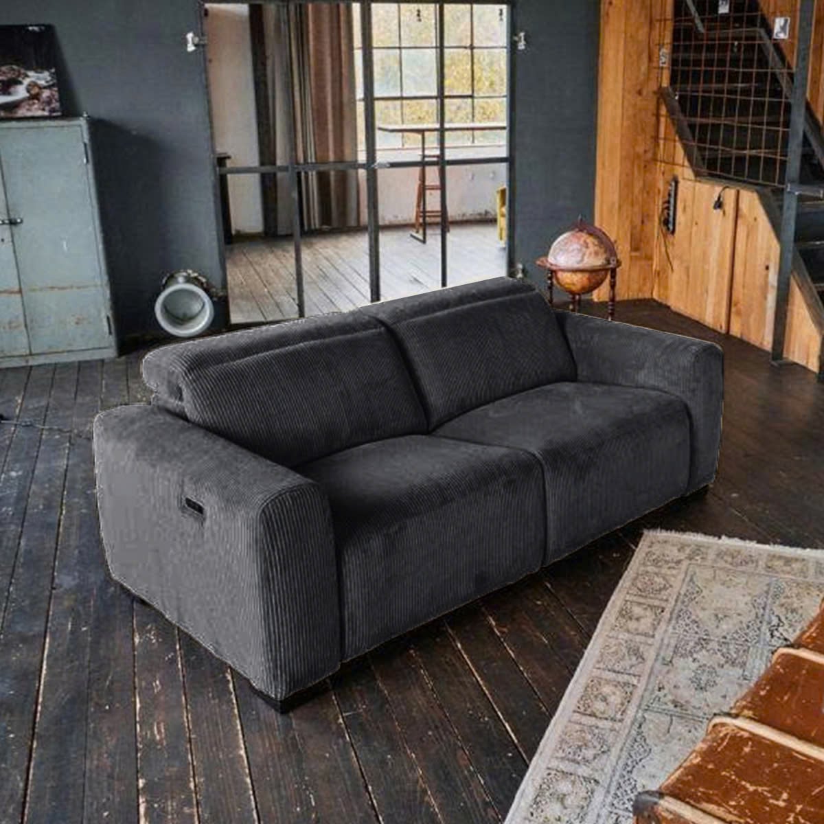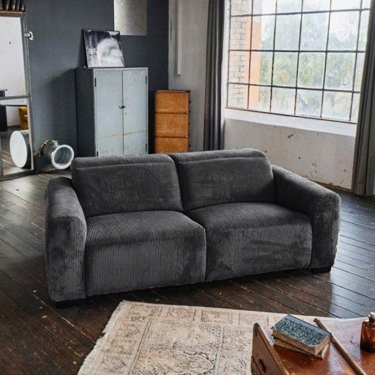 - Vải nhung gân màu xám thanh lịch, vừa mềm mại vừa cá tính, tạo nên điểm nhấn sang trọng cho phòng khách.