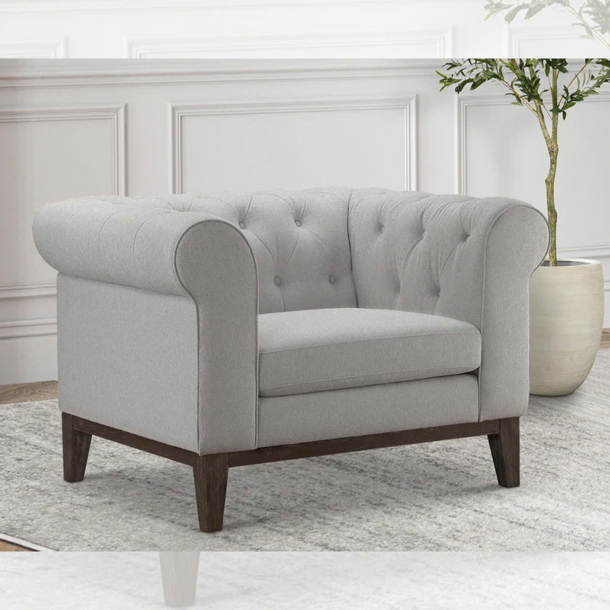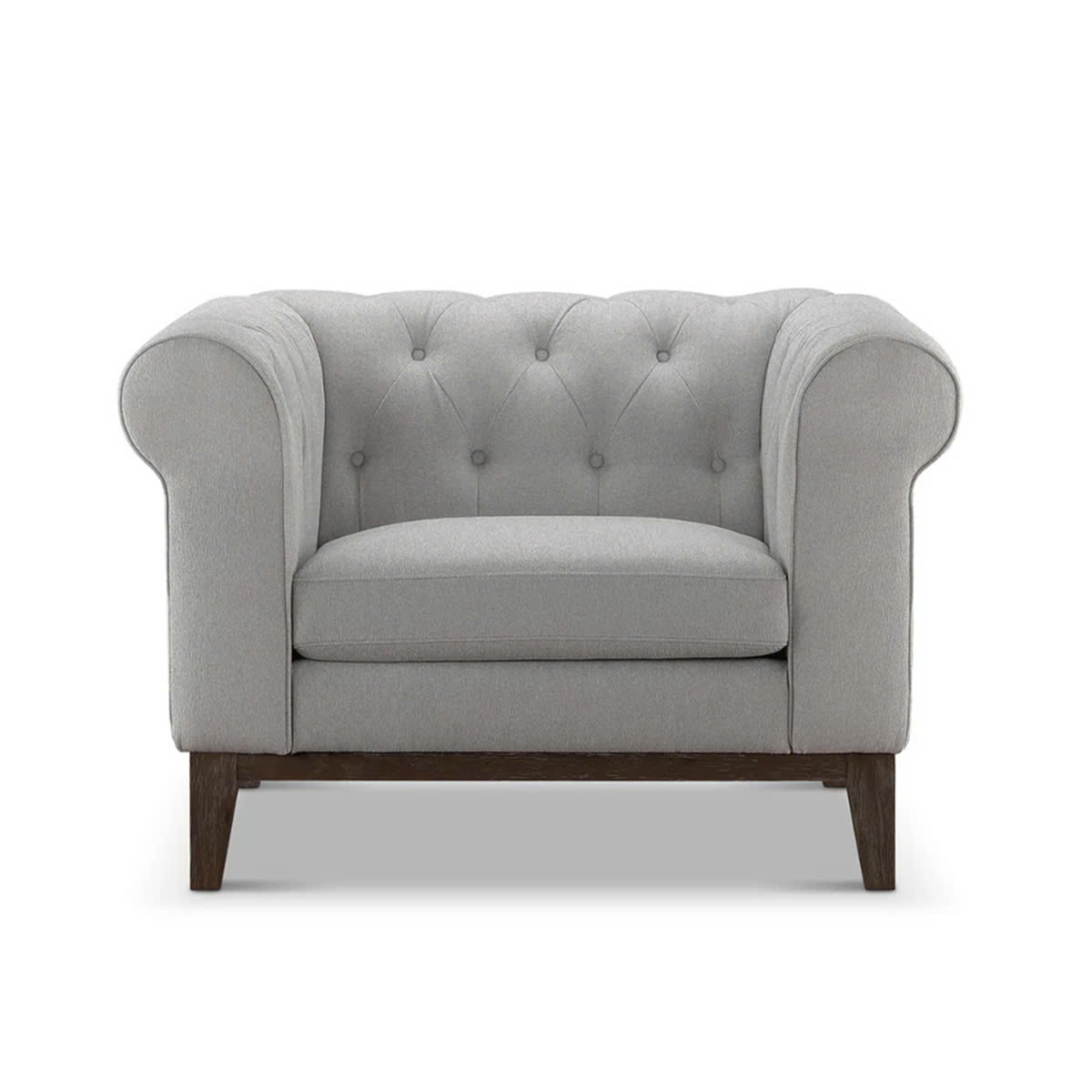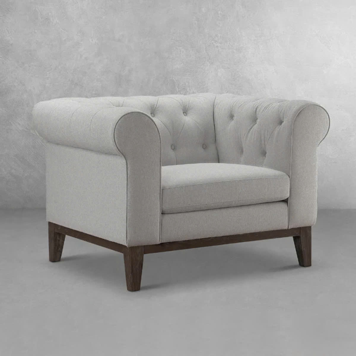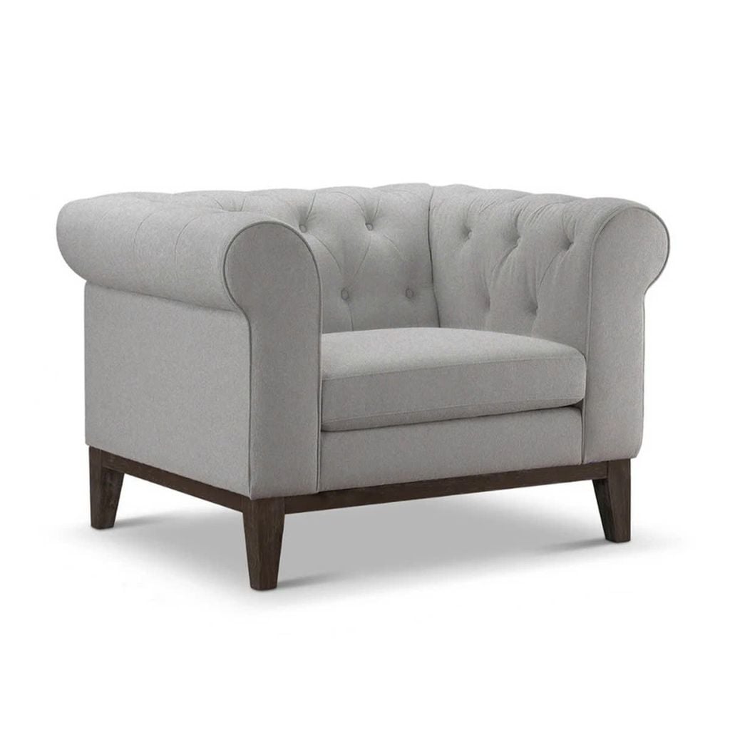 Sofa đơn Abbyson sở hữu kiểu dáng tay cuộn tròn mềm mại, phần lưng rút khuy tỉ mỉ, tạo cảm giác cổ điển pha chút hiện đại. Kích thước gọn gàng giúp dễ dàng sắp xếp ở nhiều vị trí: phòng khách, phòng ngủ, phòng làm việc hoặc góc đọc sách.