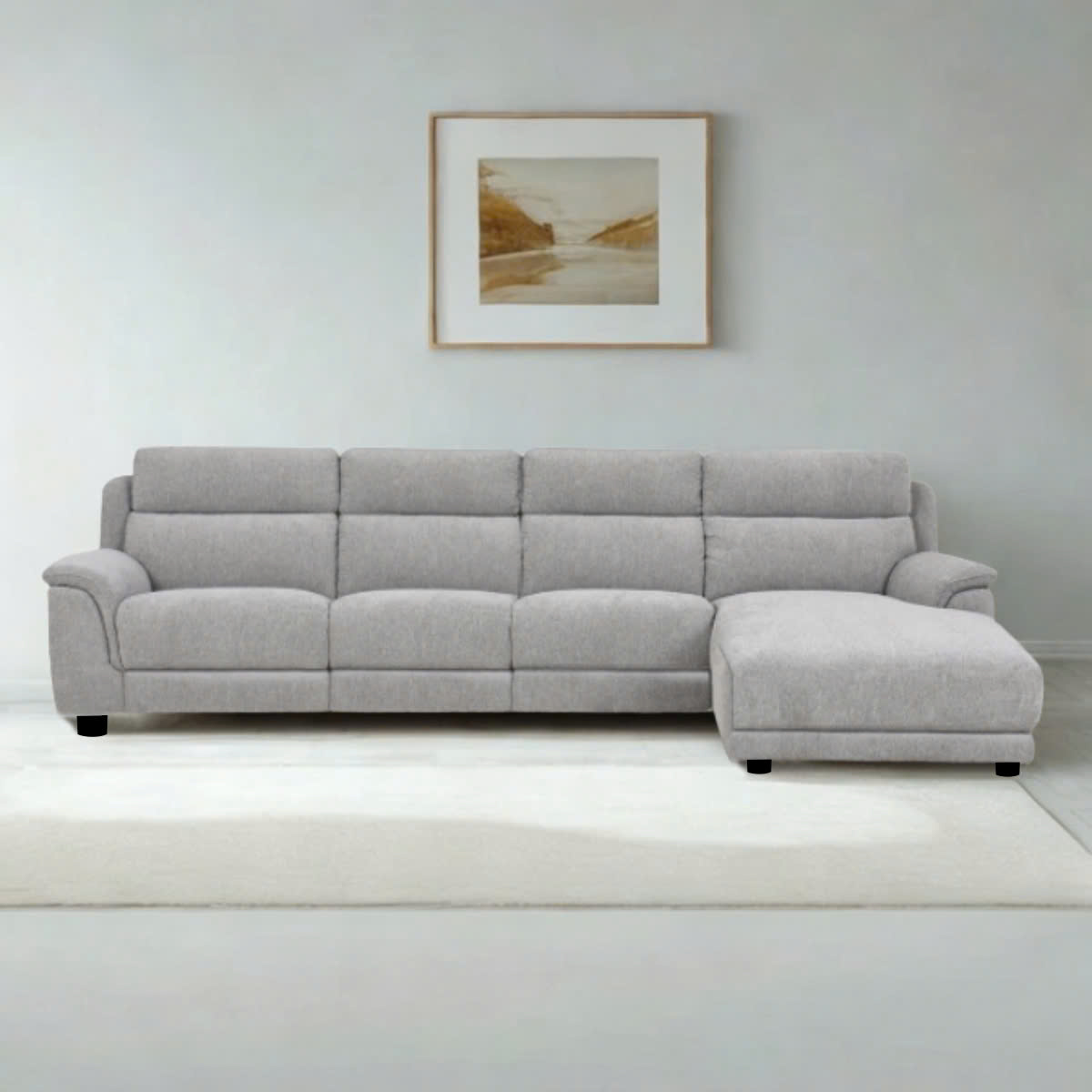 Thiết kế góc rộng rãi, đủ chỗ để cả gia đình cùng sum vầy, trò chuyện hay tận hưởng những thước phim yêu thích. Chất liệu cao cấp từ khung gỗ vững chãi, đế kim loại chắc chắn và lớp vải polyester mềm mại giúp chiếc sofa không chỉ bền bỉ theo năm tháng mà còn toát lên vẻ sang trọng, tinh tế.