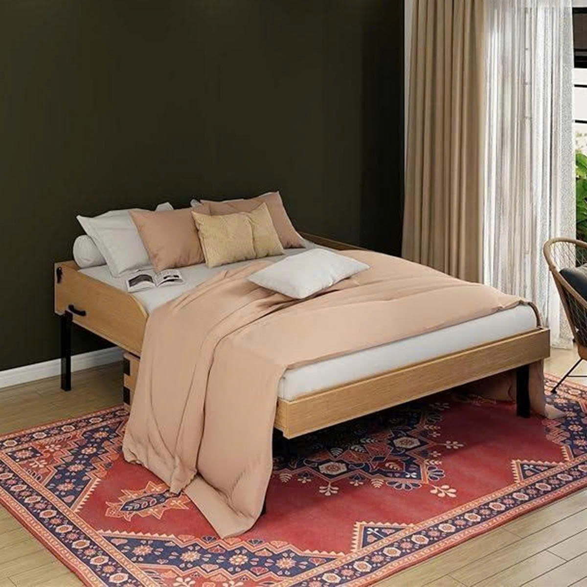 Thoạt nhìn, Xtra Bed chỉ như một chiếc tủ gỗ đứng tinh gọn. Nhưng chỉ cần vài thao tác nhẹ, cả một chiếc giường đơn hoàn chỉnh đã được mở ra – êm ái, tiện nghi và vô cùng chắc chắn.