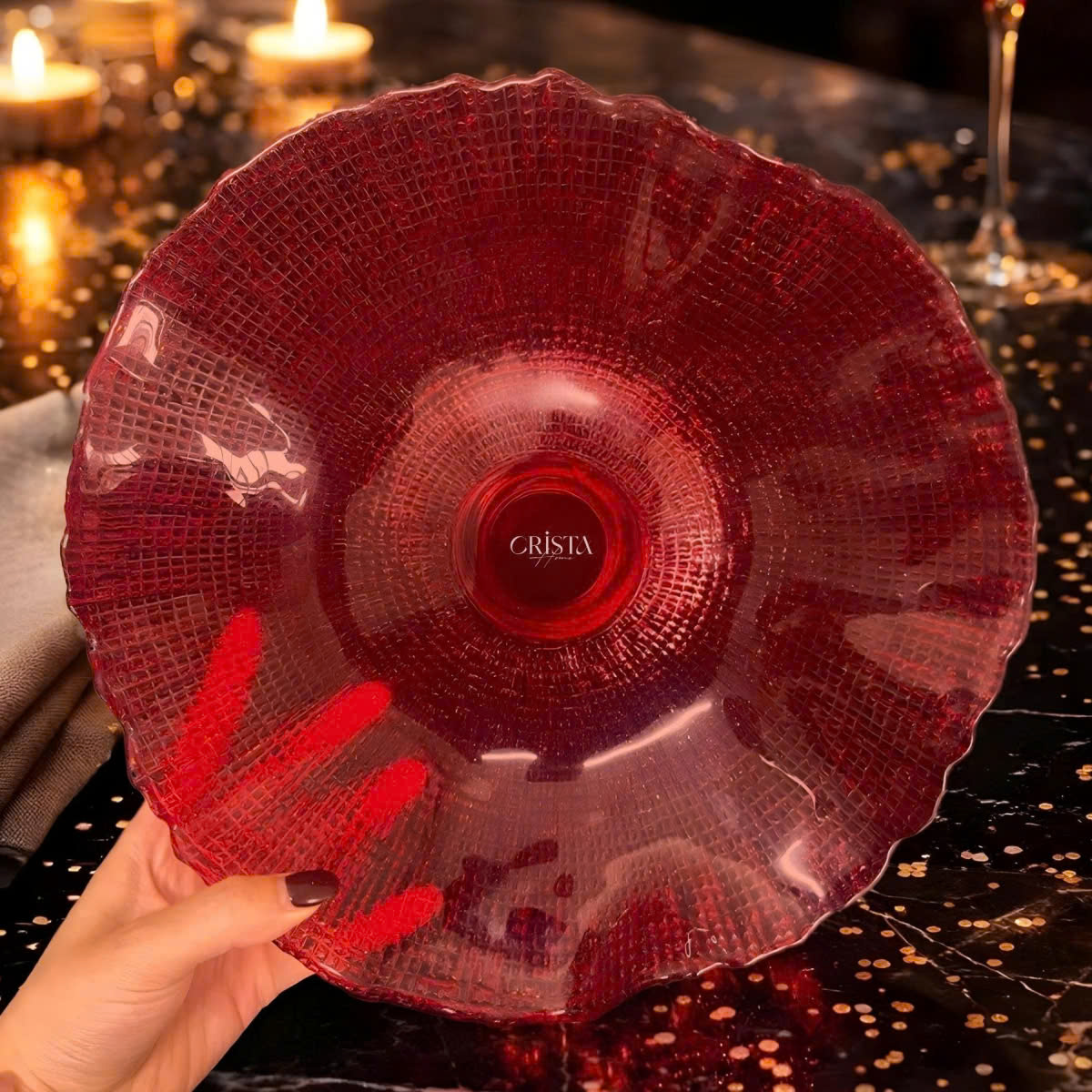 KHAY THỦY TINH CHÂN ĐẾ CRISTA MÀU ĐỎ