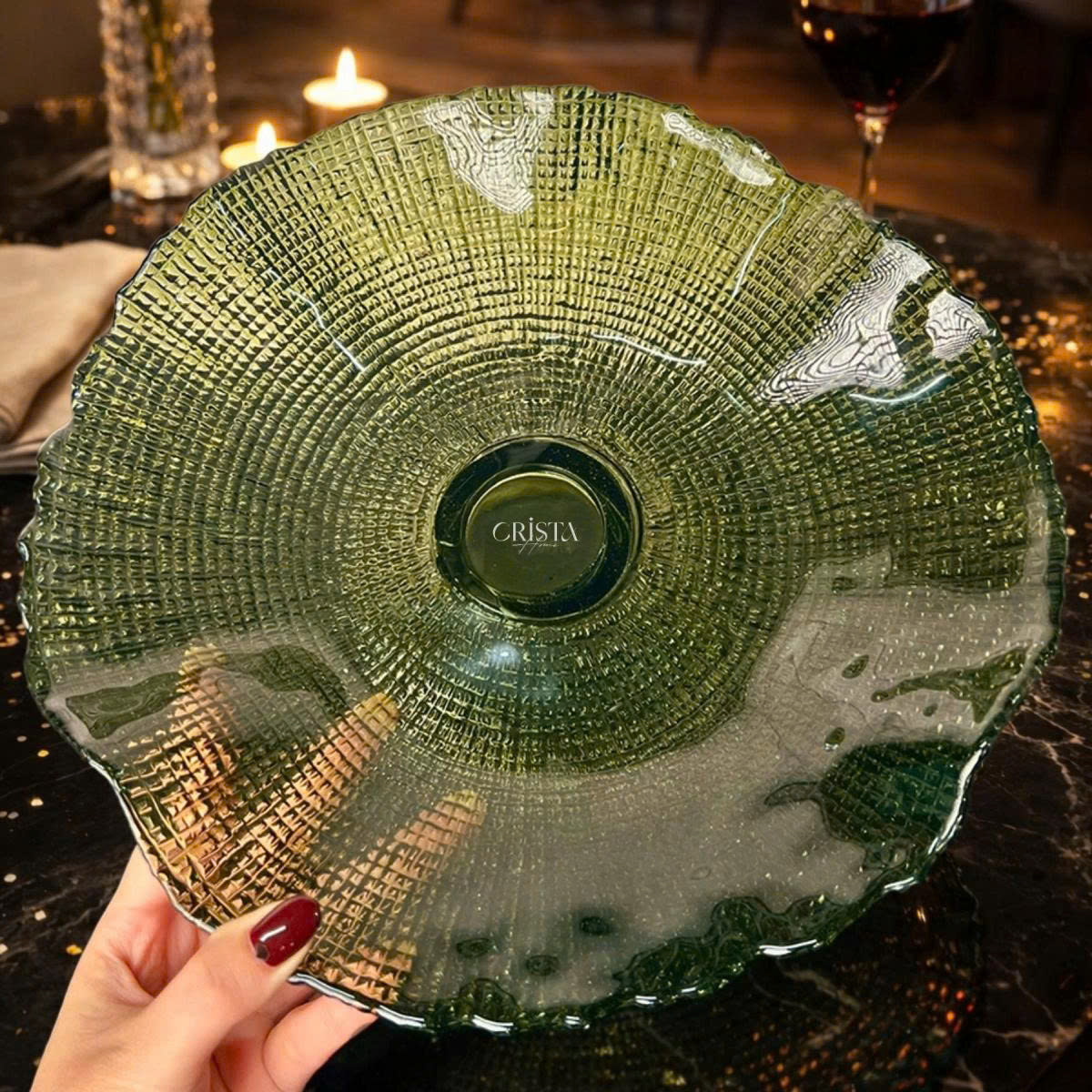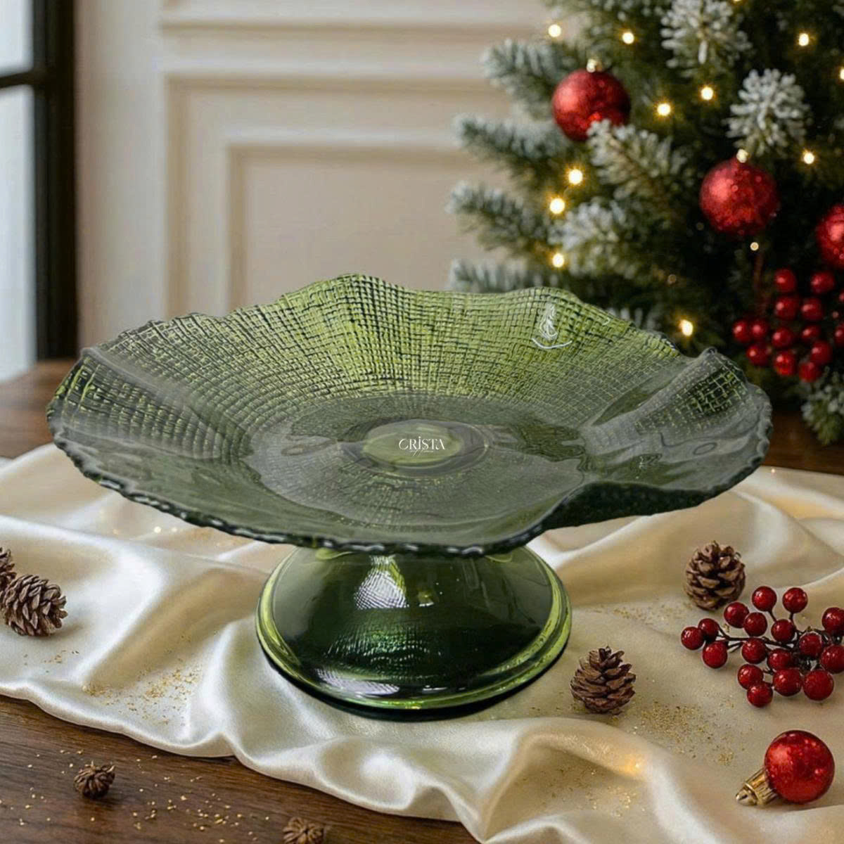 KHAY THỦY TINH CHÂN ĐẾ CRISTA MÀU XANH