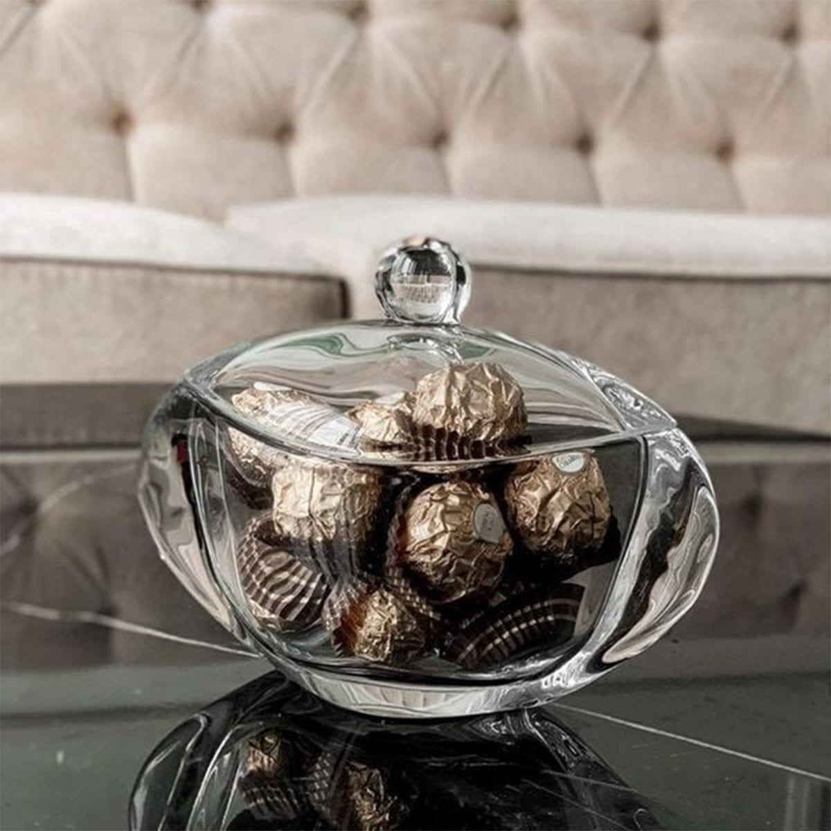 Được chế tác từ pha lê cao cấp, thố mứt sở hữu độ trong suốt nổi bật, bề mặt sáng bóng và khả năng bắt sáng tinh tế. Kích thước 18cm vừa vặn, phù hợp để bày trí gọn gàng nhưng vẫn đủ nổi bật trên bàn trà, bàn tiệc hay kệ decor.