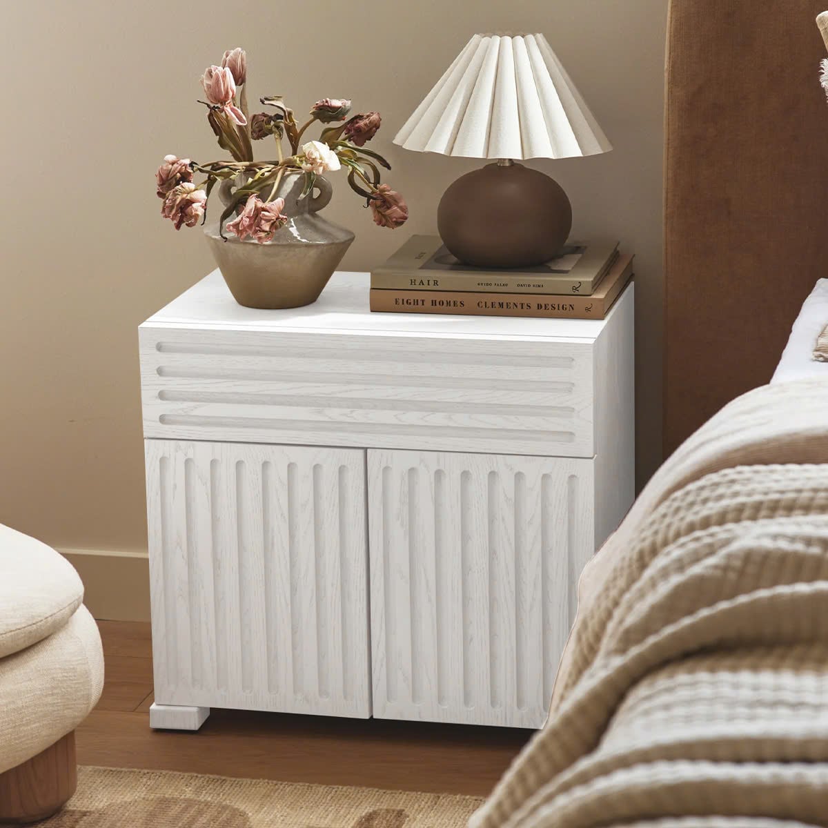 Tủ đầu giường hay còn gọi là tab đầu giường thường được đặt ở hai bên đầu giường ngủ dùng để đựng các vật dụng cá nhân. Thông thường mặt trên của tủ đầu giường được ứng dụng như một chiếc bàn nhỏ, nơi mà gia chủ đặt đồng hồ báo thức, đèn ngủ hoặc các món đồ mà bạn yêu thích.