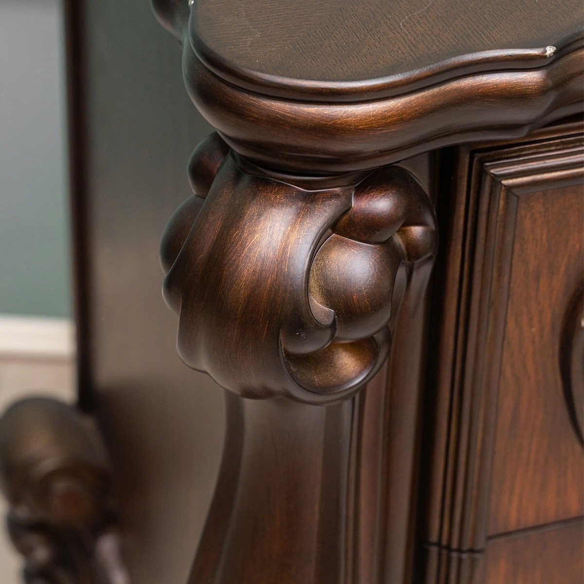 Mẫu tủ đầu giường Versailles là chiếc tủ trang trí sở hữu điểm nhấn ấn tượng nhờ thiết kế tân cổ điển đẹp mắt và sang trọng. Các đường cong được hoàn thiện tỉ mỉ và tinh tế mang lại vẻ đẹp quý phái cho không gian nội thất.