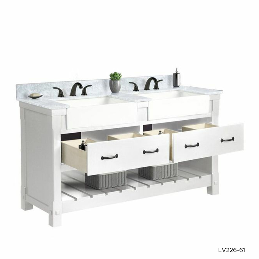 4. Chất liệu cao cấp: Sản phẩm được sản xuất từ các nguyên vật liệu chất lượng cao như bồn rửa ceramic,mặt đá, nguyên liệu gỗ nhập khẩu đã qua các khâu xử lý chống mối mọt vừa đẹp mắt vừa đảm bảo tính bền bỉ với thời gian.