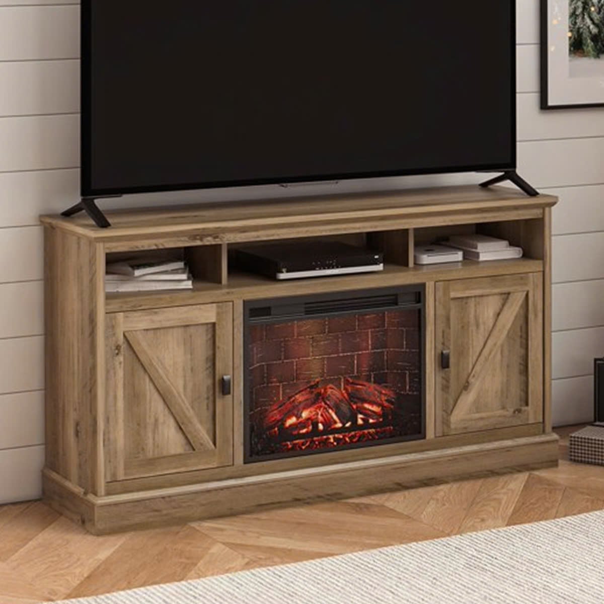 Sản phẩm được trang bị lò sưởi điện 23 inch điều khiển từ xa, mô phỏng chân thực ánh sáng của ngọn lửa cháy bập bùng mà không cần than củi hay dọn dẹp sau mỗi lần sử dụng. Lò sưởi có thể sưởi ấm không gian lên đến 37m², duy trì nhiệt độ lý tưởng từ 22°C đến 28°C, hoặc bạn có thể chỉ bật chế độ ánh sáng không nhiệt để tạo nên bầu không khí thư giãn tuyệt vời.
