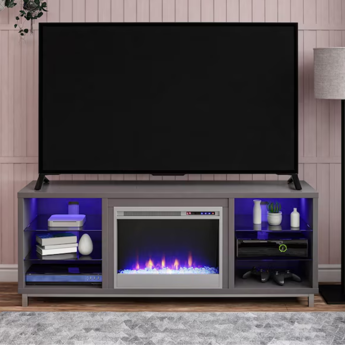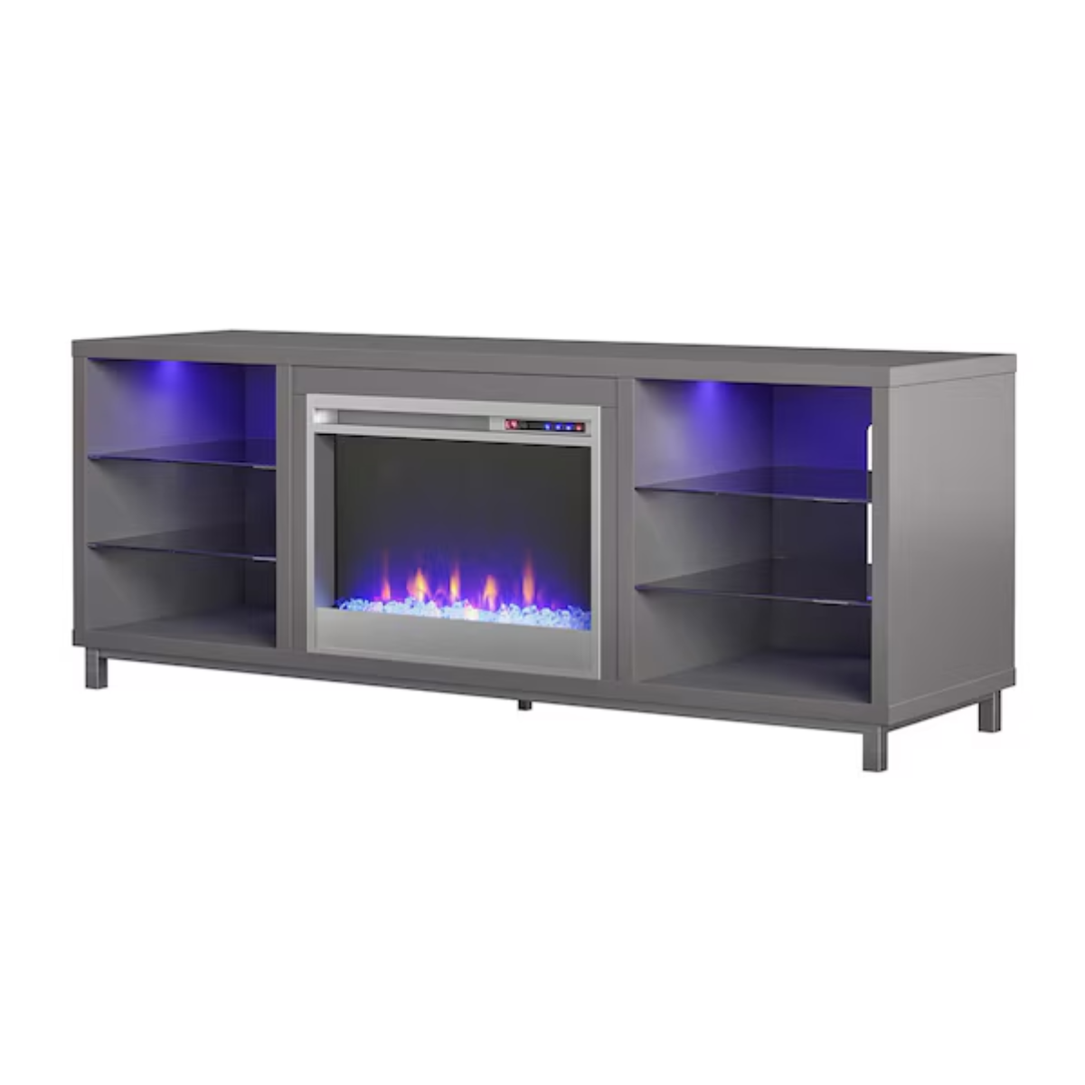 Hai bên lò sưởi là ba tầng kệ tiện dụng, trong đó có hai kệ kính cường lực để trưng bày thiết bị giải trí như máy chơi game, thiết bị media, điều khiển và phụ kiện. Đặc biệt, hệ thống đèn LED bên trong đồng điệu cùng ánh lửa, tạo nên không gian sang trọng và ấm cúng.