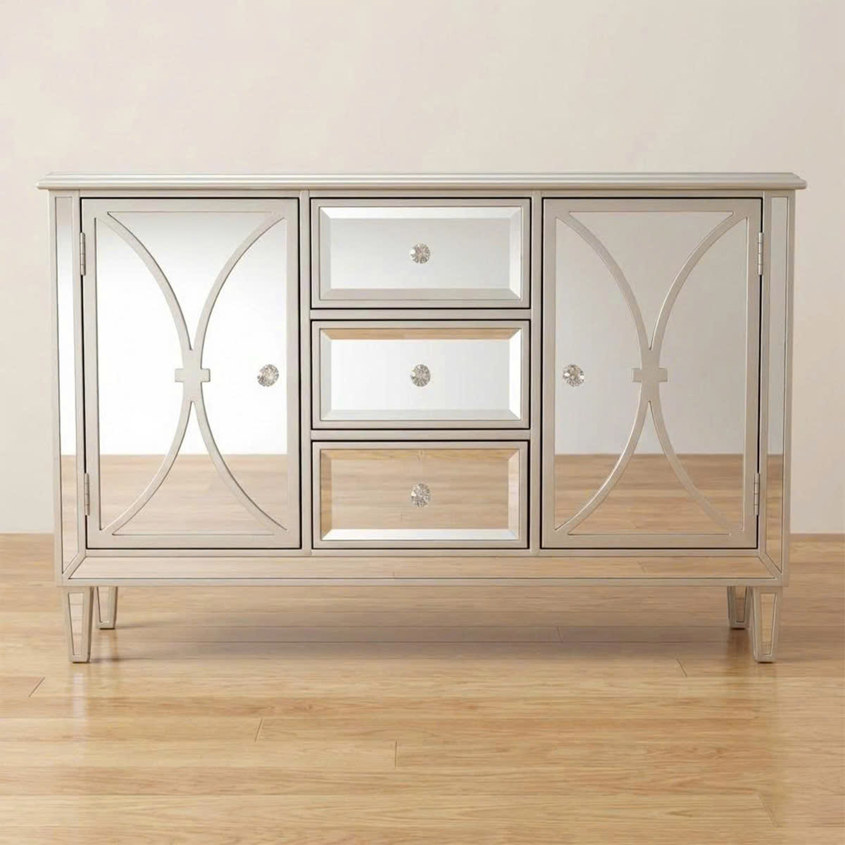 Một chiếc sideboard không chỉ để lưu trữ mà còn là món nội thất “nâng tầm” thẩm mỹ cho phòng khách hay phòng ăn. Chelsea gây ấn tượng với thiết kế hiện đại, bề mặt gương kính phản chiếu ánh sáng tinh tế, giúp không gian trở nên rộng và sáng hơn.