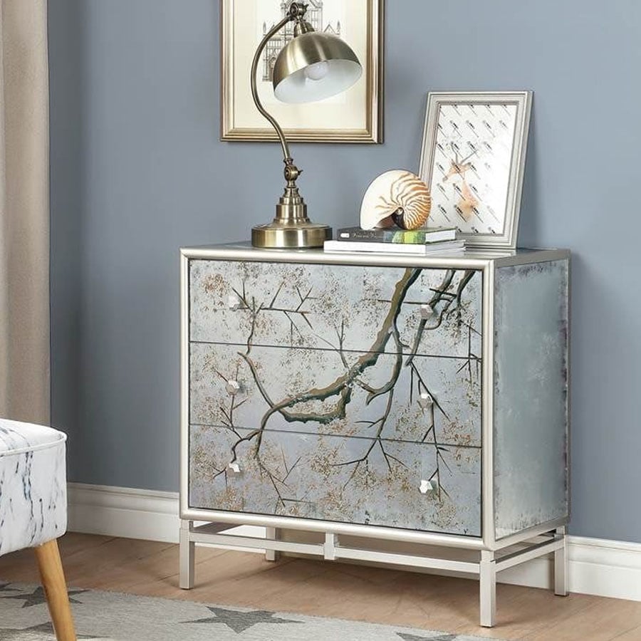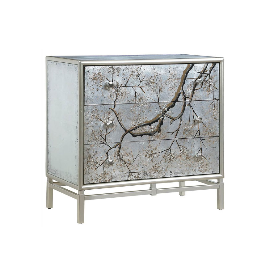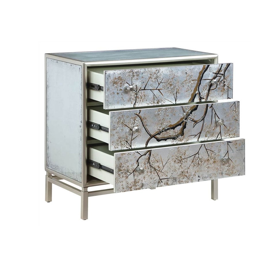 Điểm nhấn ấn tượng của tủ trang trí Winter Forest đó là hoa văn cành cây và những bông hoa tinh tế trải dài trên các ngăn kéo. Phong cách nghệ thuật tạo cảm giác gần gũi và thanh lịch bởi sự mềm mại và uyển chuyển của những bông hoa. Màu sắc ấn tượng, nhã nhặn thổi hồn vào sản phẩm.