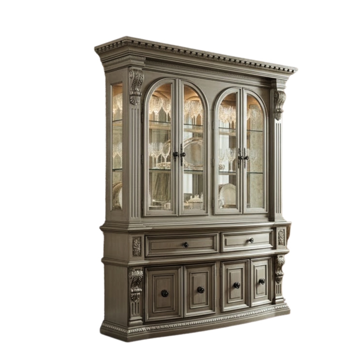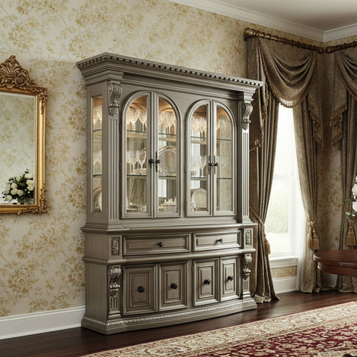 - Thiết kế vòm kính độc bản: 4 cánh cửa kính uốn vòm mềm mại, gợi nhớ những ô cửa sổ trong các dinh thự Pháp cổ điển. Mỗi món đồ trưng bày từ pha lê, đồ sứ đến vật phẩm decor – đều trở nên lung linh, nổi bật và đầy cuốn hút.
